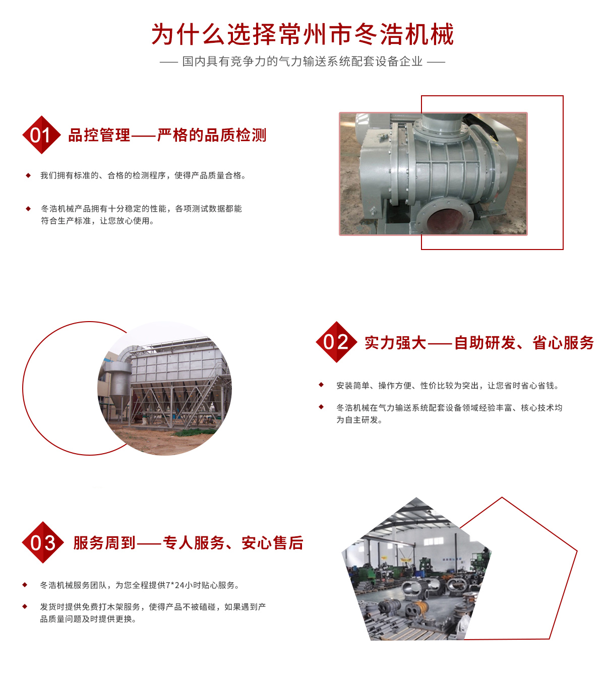 常州市冬浩機械有限公司占地面積5000平方米,擁有一支專業(yè)的科技研發(fā)團隊和配備專業(yè)的生產設備。專業(yè)致力于氣力輸送系統(tǒng)配套設備的研發(fā)、生產及銷售。產品在實際應用中不斷創(chuàng)新、不斷升級,現(xiàn)已對接實現(xiàn)自動化、智能化、人性化。實踐證明公司生產的吸糧機系列、高溫羅茨風機系列、關風機系列、氣力輸送設備系列、特殊工況訂制系列的產品被廣泛運用于石油化工、油脂、化工干燥、除塵、冶金、環(huán)保、電子、煤炭、建筑、電力機械、糧食、飼料等行業(yè)。為解決輸送、搬運等環(huán)節(jié)中節(jié)約大量的人力、財力;從而提高了生產效率。